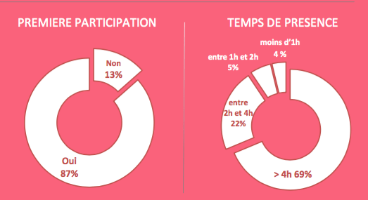 214 participants réels. 69% d’entre eux restent pour la totalité de la formation. 43% viennent d’ailleurs que la région parisienne, dont 13 hors de France. Découvrez tous les chiffres !
